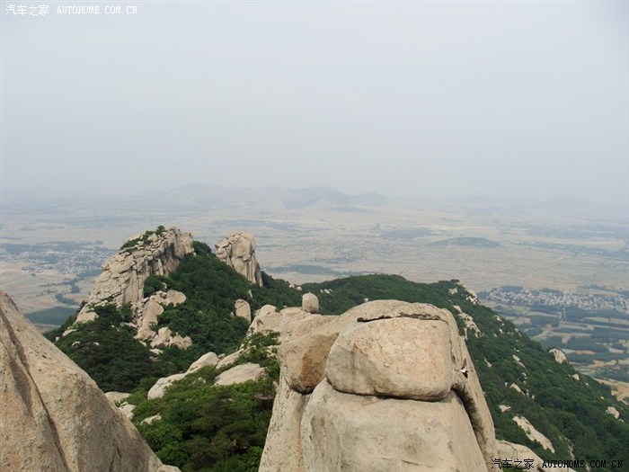 。沿着一路石阶,爬到山顶,倒也不是很累,就是登顶时,颇费功夫,山顶处基本没有台阶,全是大石头,非常滑,上去和下去都只能弓身在大石下钻过,我就手脚并用了,登顶不易。山最高的顶部是一块45度的大石头,只是四周有一圈铁栏杆,鞋滑的真是不宜久留