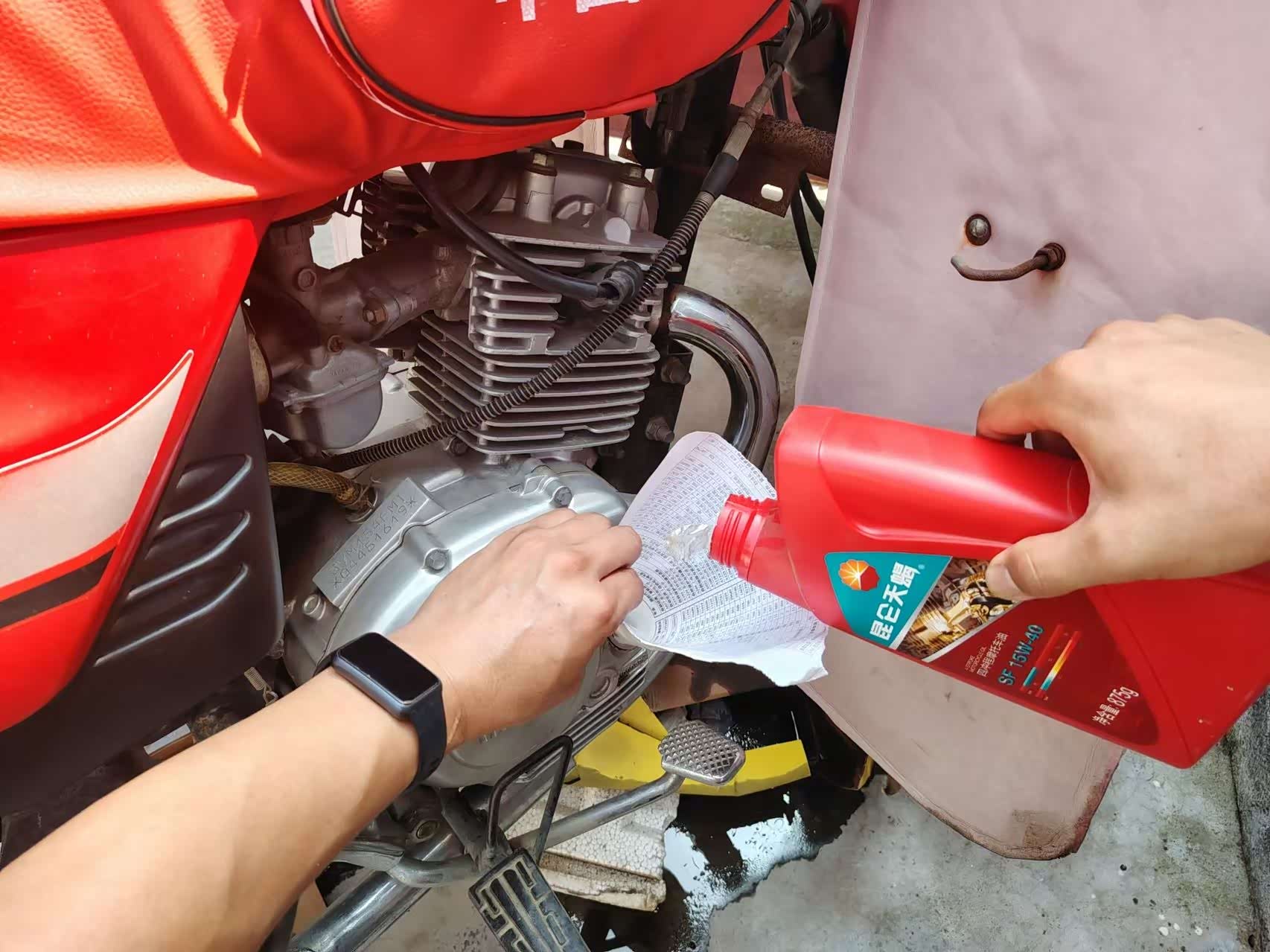 但偶尔有一次在我们镇上一个小的加油站给车子加油后,明显就能感觉出有所不同,小加油站的油品质量不怎么样,所以摩托车在骑行过程中,油门拧的比较大的时候,摩托车发动机就出现有断油现象,害得我就赶紧把原来油箱里剩下的汽油抽出来,再去中石化加注燃油,车子就正常了!看来我们还是不能为了省钱,给摩托车加油,人家是不买账啊!