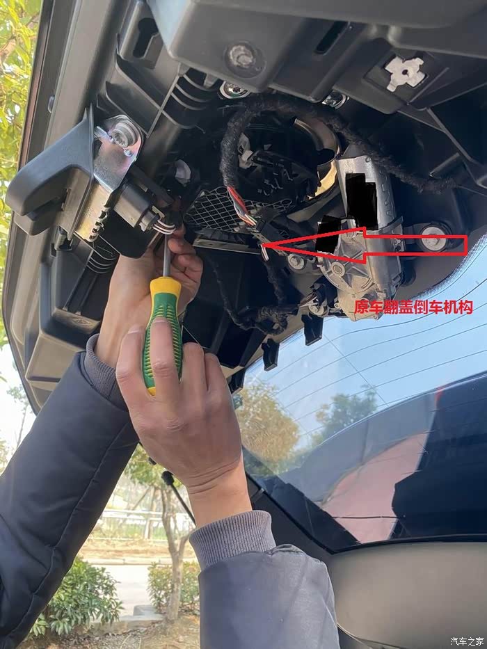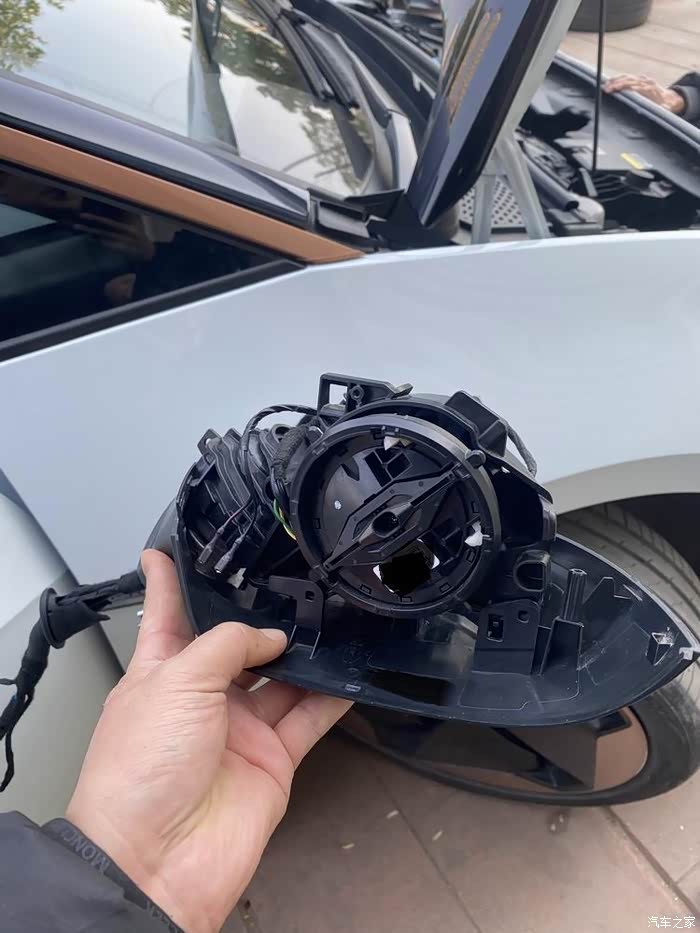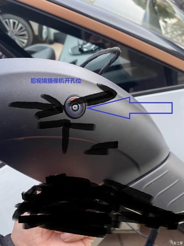难点2 是后视镜外壳,没有摄像机原装位。只能自己手动挖孔了,其实这个欧洲是有原装带摄像机的ID3后视镜,但是要等个把月。算了自己开孔吧。最终效果就是如此还不够完美