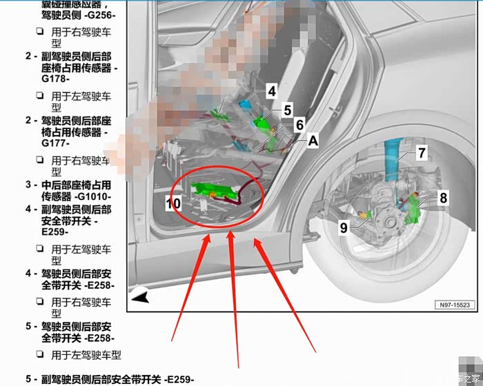 模块的实际安装位置。根据elsa手册可以查询到原装位在主驾驶后排座椅下方。幸运的是我们ID3照样有原装位!