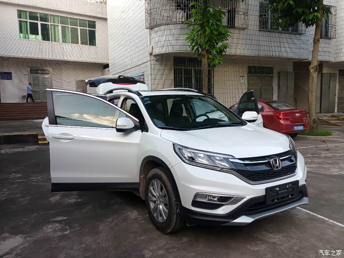 订车到提车,半个月,由于要办贷款手续,全款的话可提现车!选车过程可谓一波三折,由于已有一台轿车,所以这次买车目标明确,SUV!从汉兰达到锐界到自由光,再到森林人、RAV4、途观等,全都看了一遍,在日产差点定了奇竣,PASS的原因不说了,说说为什么最后买了CRV,开始还真看不上CRV,主要是底盘低,我心目中的SUV底盘都得有个20多公分吧,CRV满载只有14,同轿车差不多,刚好有朋友有一台CRV,他知道我要买车,便极力推荐要买CRV,说什么省油,省心,保值等等,在朋友游说下慢慢倾向CRV,现在看来,还真选对了!