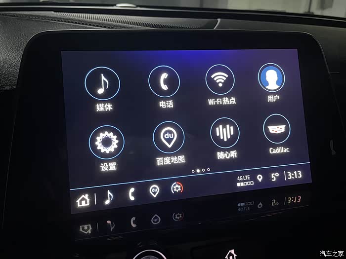 A: 凯迪拉克 CUE 的默认桌面如上图所示,个性定制页面是一个基于 CUE 的 App ,开启后会有一个按钮始终悬浮在桌面和其它程序之上,显然和 CT5 上的集成度没法比,受不了这狗皮膏药,太丑了,而它实现的功能可有可无,反正我是装好就又卸载了。