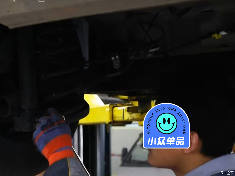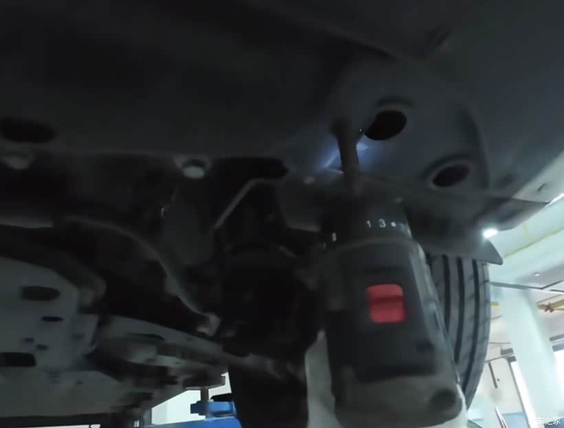 第一步:四轮常规保养。在维修保养处,升降器把车辆升高,师傅分别检查了底盘和四个轮子。
