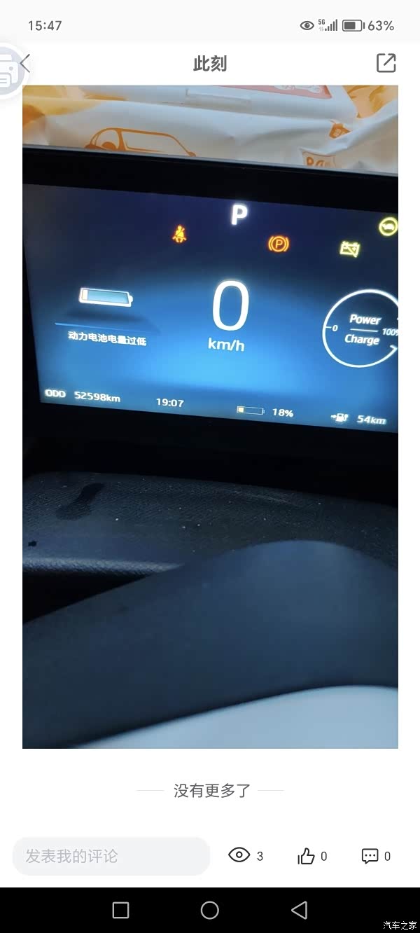 开到表显54公里,长期这么干,估计你车电池很快不行了,得回笼搞平衡了。磷酸铁锂电池不怕充满,就怕用光电。想让电池好,就不要使用低于30%,不然你就动不动趴窝,电池很快报废,别怪厂家电池不耐用。