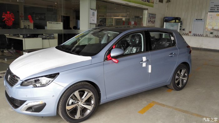 这么一晃就过了年,期间一直重点关注408,到了三月份,加了个标致团购群,得知408顶配优惠2.2w,果断准备出手,到了4儿子店,团购的人一大群结果就2个买顶配的,谈了半天——只有白色没有棕色的车(翼虎是白的,老婆不想再要白色了),而且是去年10月份的库存车,据销售说顶配不好卖,买的人太少,厂家把手里存货卖完就不做了,我就艹了,正准备走人,看到今天的主角了——308S,当时只有一台展车,坐上去感受了一下,虽然不能试驾,但是发动机和408一样,也应该给力,配置不错,该有的都有,但是外观亮骚,尤其是天窗太屌。问销售什么价,销售一概不知。