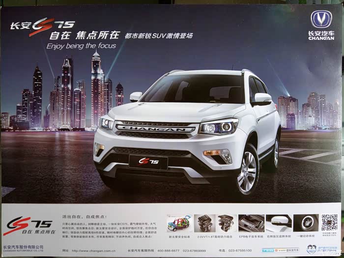 CS75的火爆也是理所应当的事,这也直接导致了我不但没能亲自试驾过这辆车,就连现车我都没见着,仅仅凭借网上的信息资料和4S的这张宣传单毅然选择了它,我依然不提的是那时订车和提车的煎熬和曲折。