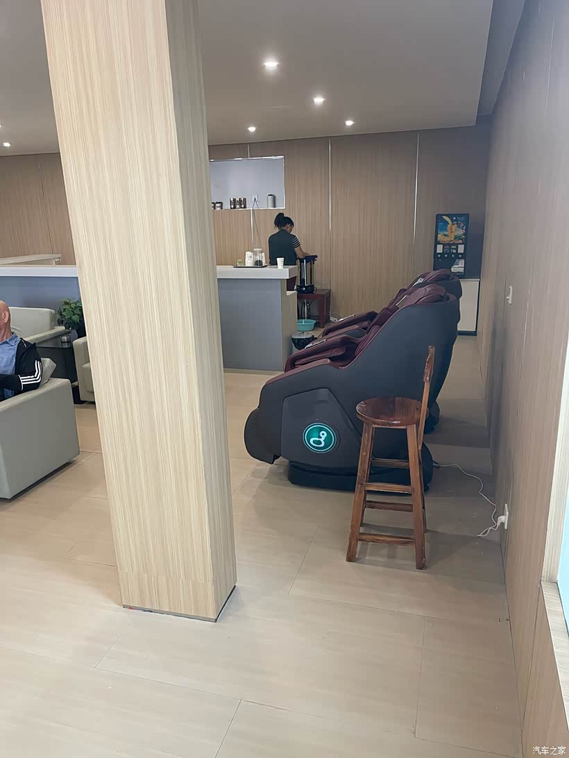 随后她带我走进店内的车主休息区,大厅里灯光明亮,布置得也很温馨,沙发、茶几、绿植一应俱全,让人不像在“修车”,更像在“休息”。