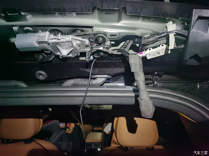 走线我选择走顶棚,其实走上门框更简单,扒胶条就行了,但我实在不想招惹那个巨大的侧气帘,所以宁愿费点事,走顶棚。