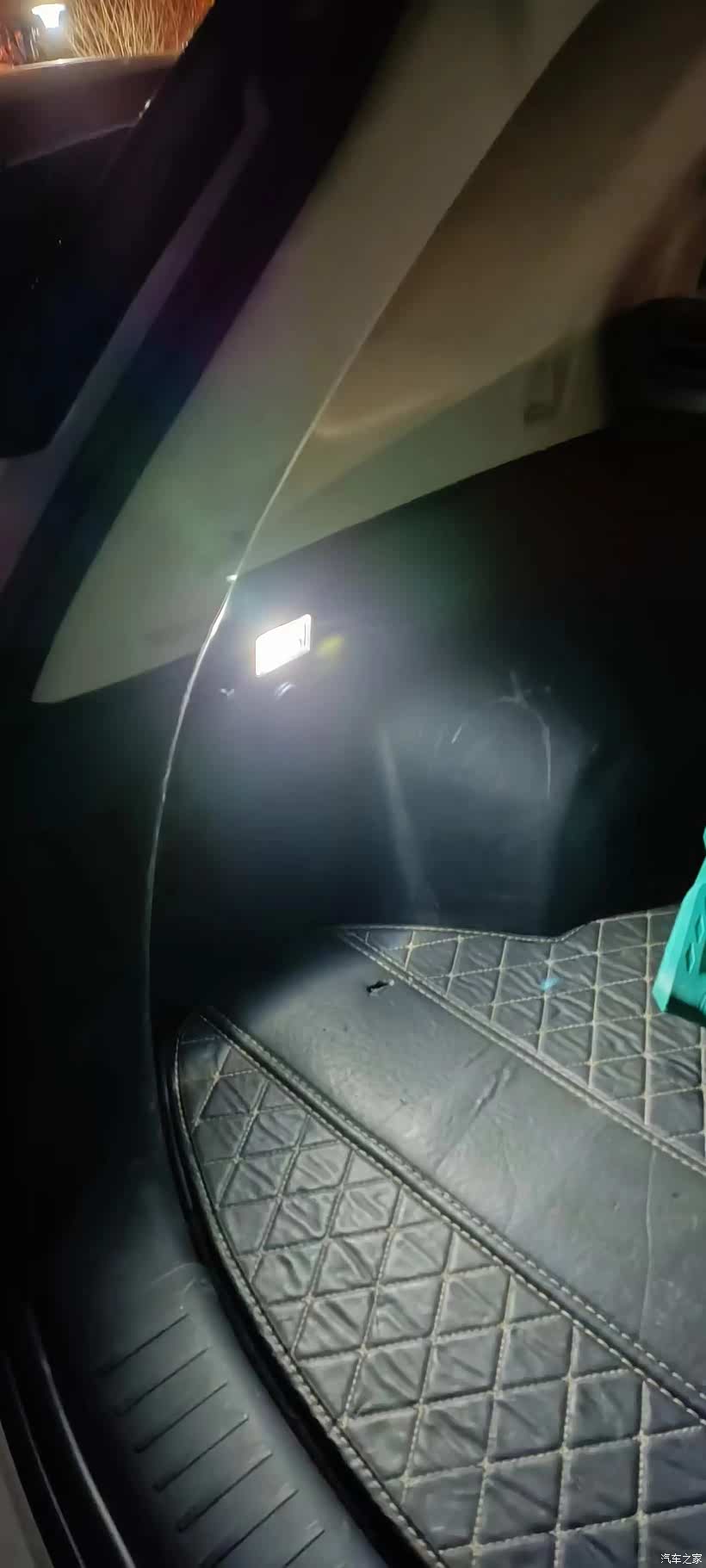 没有就自己DIY加装。拆开后座的阅读灯,研究了一下,加装后备箱灯也不是件容易的事。
