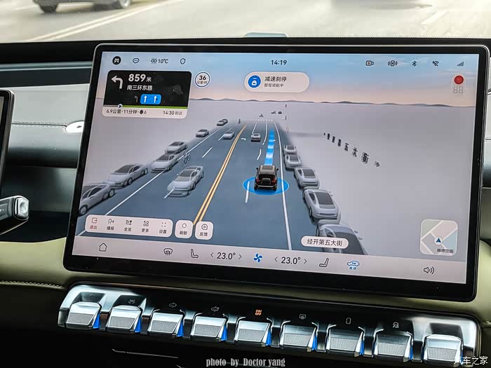 车内音响的音质真不错,不愧是丹拿音响,调教的也恰到好处,18个扬声器让每一个音节都迸发了不同凡响的效果。