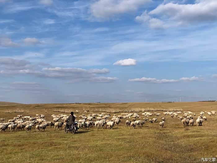 满洲里 到 黑山 头路上,基本上一路为大草原,牧民的世界,牛羊马的天地。在 青海 线车车游时,我们遇上的是“横行无道”羊群