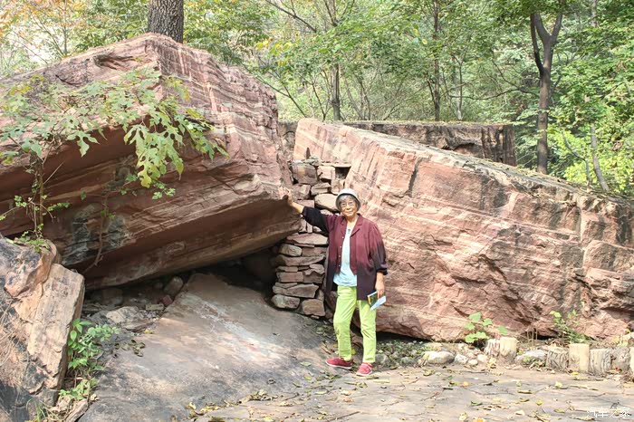 奇峡群的岩石大多是红色,在地质学上称作石英砂岩,这里14亿年前是一个浅海环境,红色石英砂沉积后,在高温、高压作用下形成这种岩层,后经燕山造山运动,山体形成褶皱,又经千万年的流水切割、侵蚀,形成今天奇特的地势地貌。