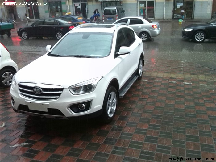 我的第一辆车是雪铁龙c2,原来也开过好多车,最早开的是北京吉普2020,后来开的桑塔纳99新秀,这里赞一下2020,有一次在单位前轮掉单位井盖里了,挂上后驱,开了上来,所以对越野车有好感。后来自己买了c2,小c也陪我们家5个年头,立了汗马功劳。但是孩子大了。小c的空间太小了,拉东西部方便,所以去年ld想换个车,要空间大的。ld说他们单位的女士基本都开suv,所以要换就要suv。嘿嘿,ld是个本本族,所以要自动挡的。ld说日本车不考虑(原因不说了)看过劲炫,ix35,智跑,标致3008,途观等,途观ld说单位有了,不考虑。劲炫我比较中意4驱次低配的,全景天窗漂亮啊,拉ld去看了,ld说太小,全景天窗不安全,pass。ix35和智跑同平台,但是智跑4s认识人,4s说能送的都送,差点就定了2.0gls。后来3008上市,看了n次,差点定了。又纠结于2.0和1.6t之间,主要价格相差大,白赚了4s送的车钥匙链,哈哈。后来我们这里搞车展,ld一眼看上了x80,马上下定,大家猜猜定金多少,哈哈,100大毛。后来ld说离我们家近的还有个4s店,又去哪里看了,5月17日又下了订,这次定金10000,送5000礼包。6月4号车到了,装内饰,贴膜,5号又干了一天,下午提的车,当时x80有7,8辆,但是白色就一辆,不多说了,上图。