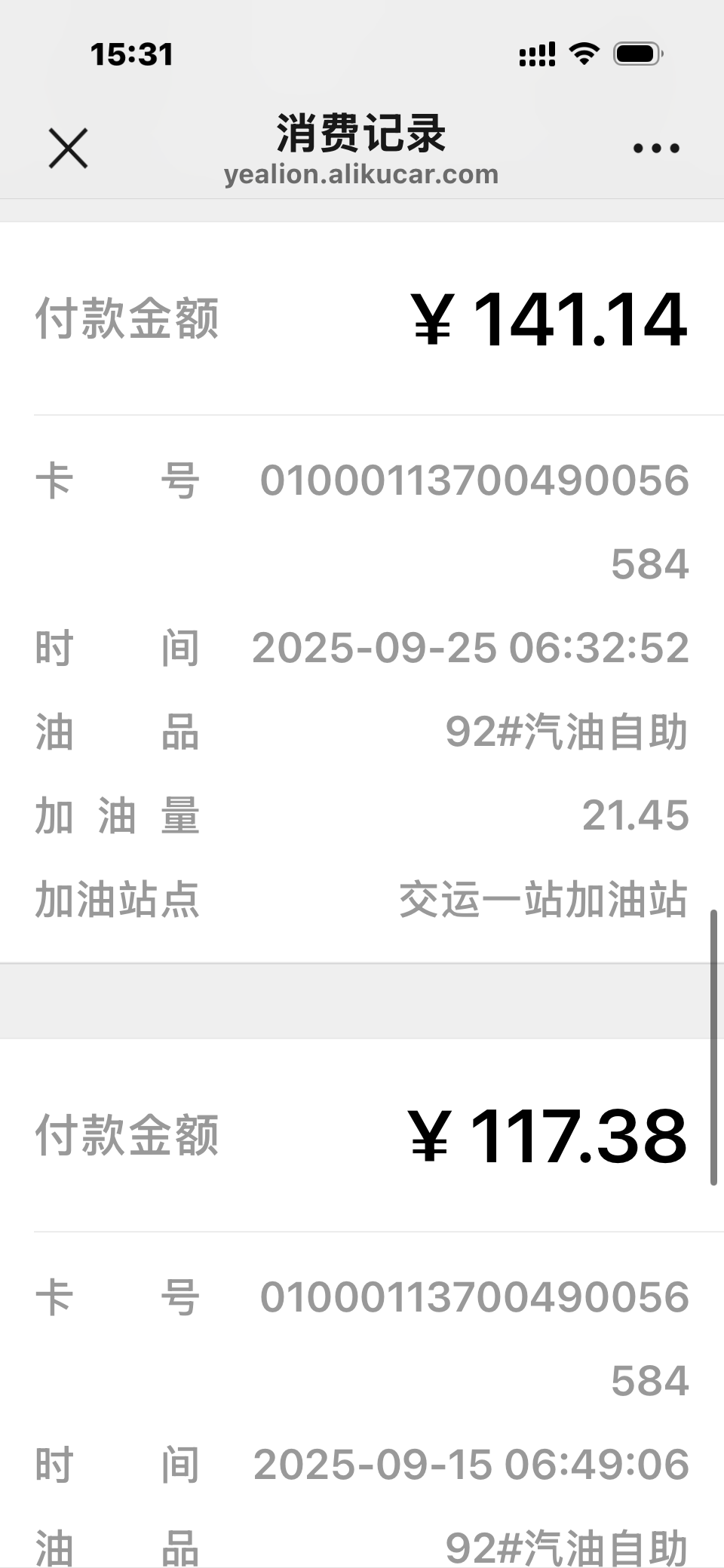 2、油费:因为我的加油公众号数据查询只能查到3个月的加油记录,其中10月份我休假了,车辆使用率偏低,取9月份和11月份的平均值为433元。加上每年去栖霞市和文登市两次,路程共计740公里,油耗为7升计算,按照每升7元计算,则四次油耗为:363元。年度总的油耗为:5553元。我的油卡基本是每年年底充值5000元。