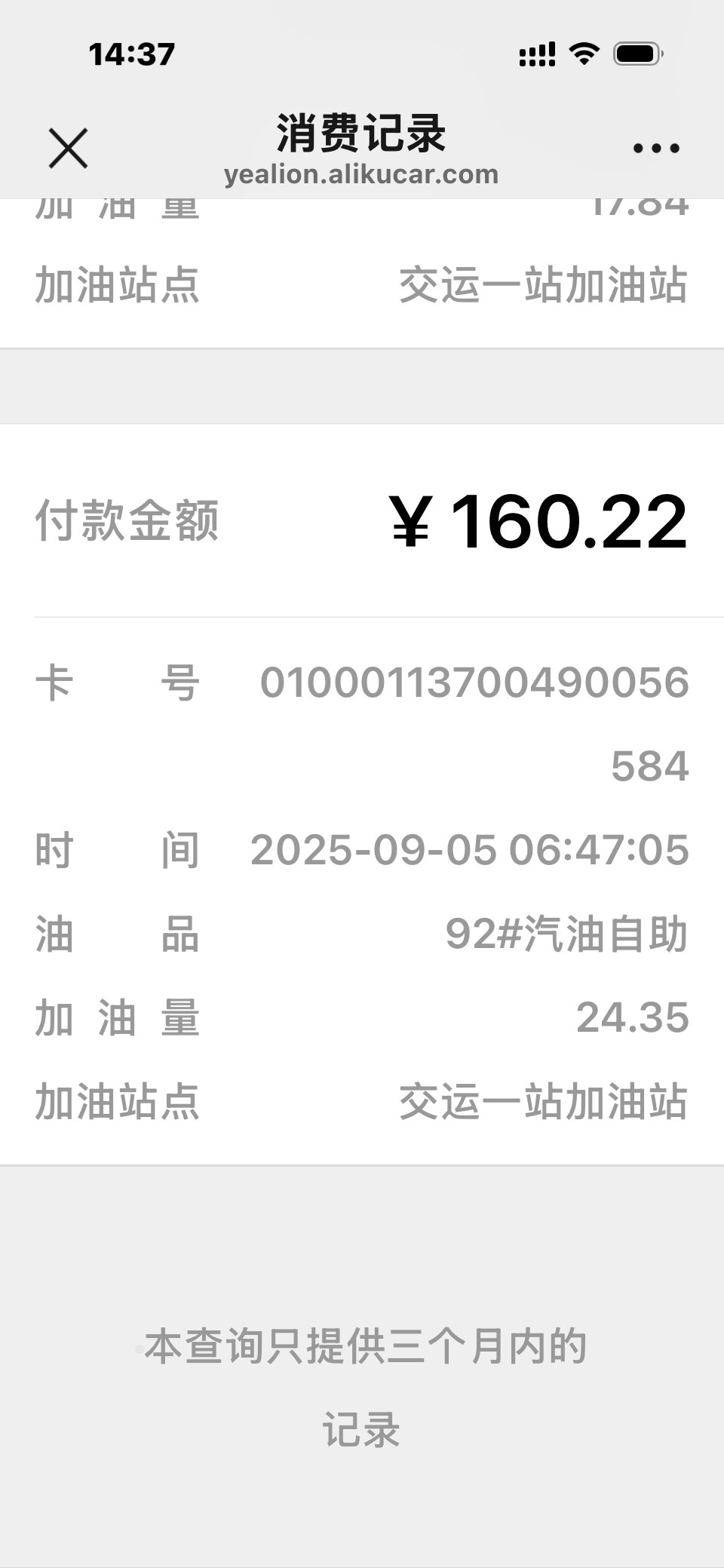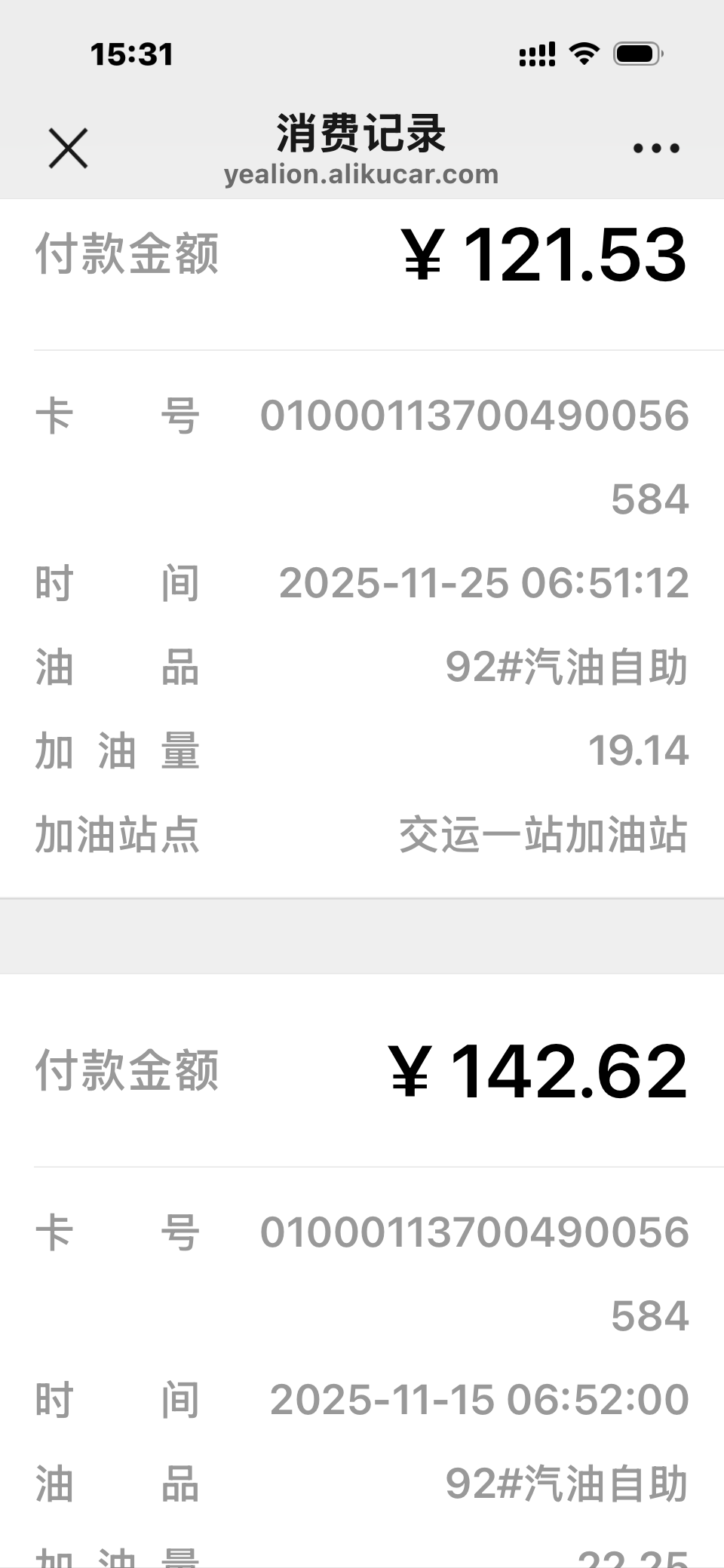 4、洗车费:0元。因为我是加油站赠送洗车,所以没有洗车费。