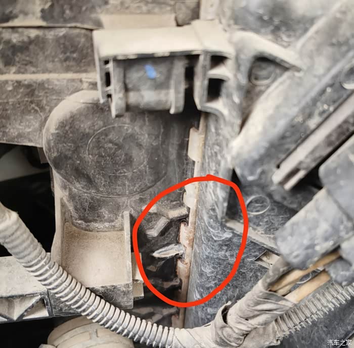 这是进气格栅上面的两个两个塑料隔板,上面的卡扣和螺丝很好拆。