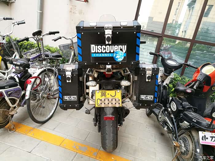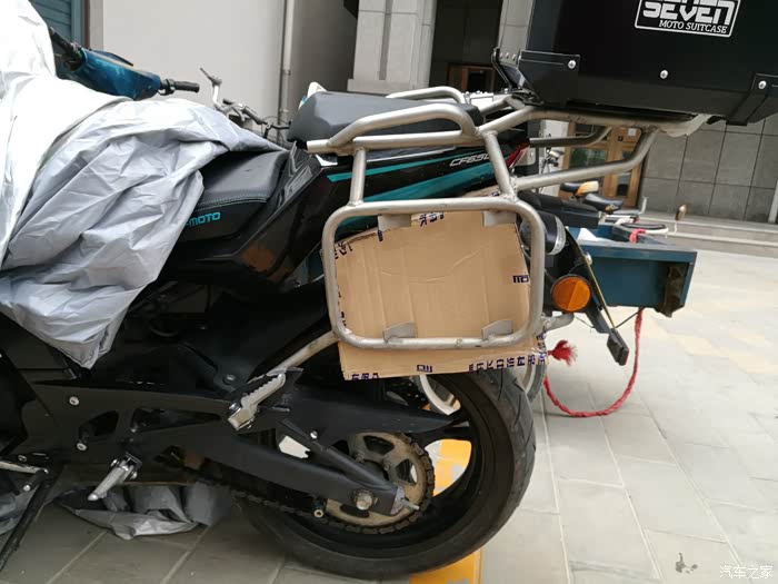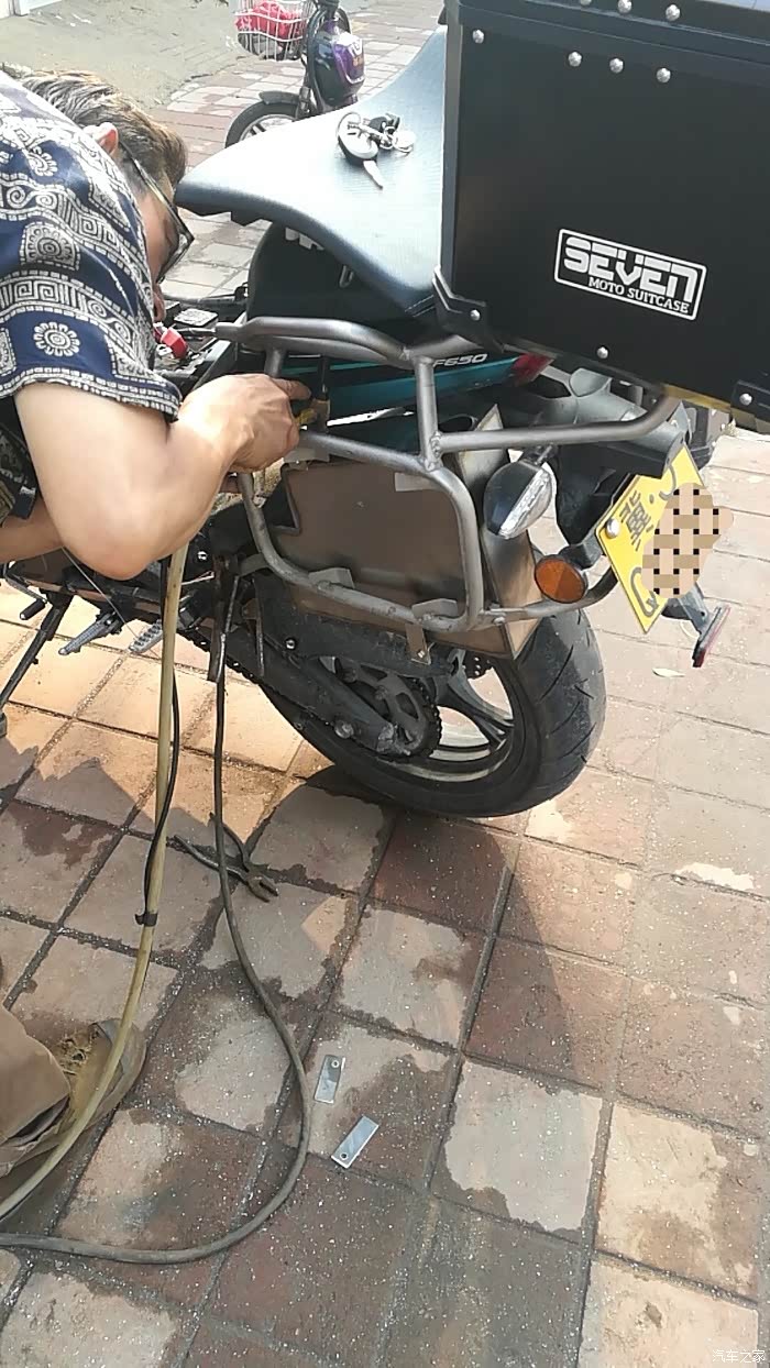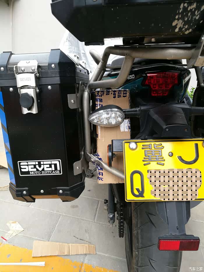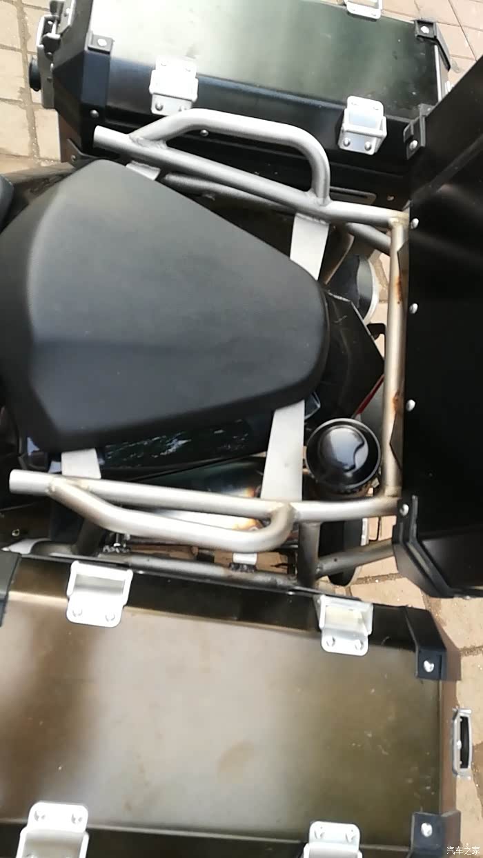 如果想实现我的想法就要解决两个最大的问题:一是要找好外挂副油箱的位置,二是主副油箱如何连接,实现副油箱油如何自动吸到主油箱。先找位置,着实有难度,摩托车体积过于紧凑,而且还要做到最大可能的隐蔽,经过一周的找寻,终于找到一个合适的位置,就是边箱内侧,一是有边箱架子,可是固定副油箱,二是隐蔽,经过查看,左侧边箱内侧空间最大,于是位置定于左侧边箱内侧。至于第二个问题,是参考了一位隆鑫650车主老兄的想法,也是全论坛第一个加外挂副油箱的车主,在此感谢,方法就是利用主油箱真空,自动将副油箱汽油吸进主油箱,他的已摸索成功,我在焊接副油箱前,也做过实验,效果非常的好,原理就是将主油箱去往碳管的油管接到副油箱底部出油口,再将副油箱上部接碳管,前天副油箱装车,完毕,今日早晨到中石化将副油箱加满,实测5.5升,主油箱加满,到晚上时副油箱油面下降,达到了预期效果,我的车长途百公里油耗4.2,这下续航多了一百多,总续航能到五百。