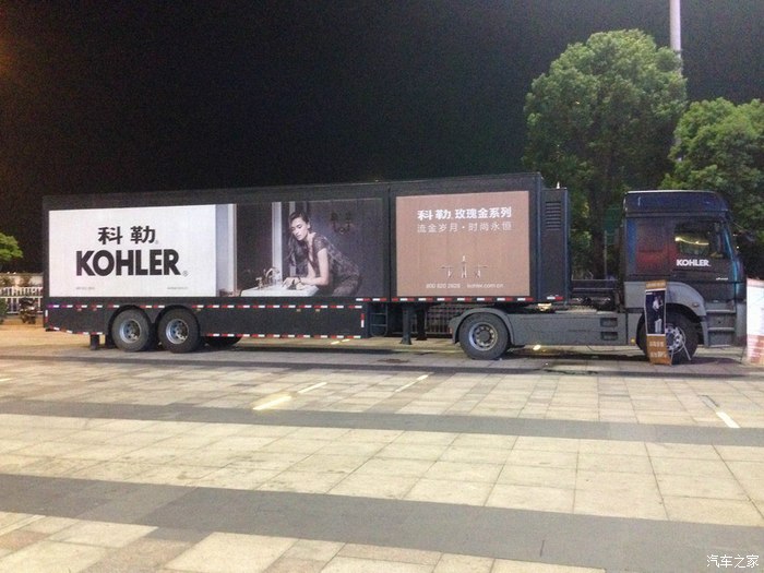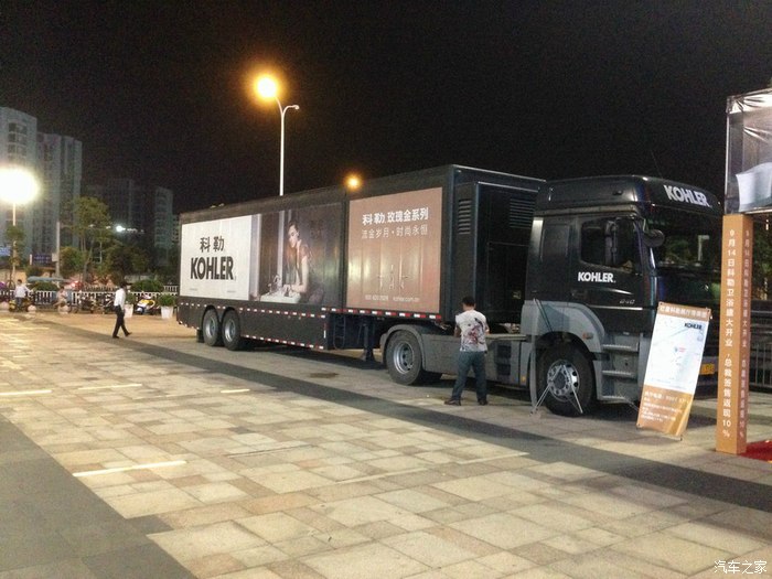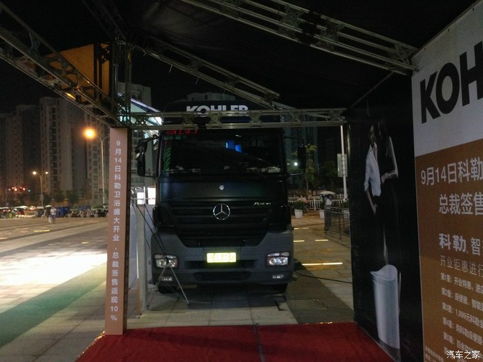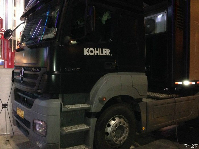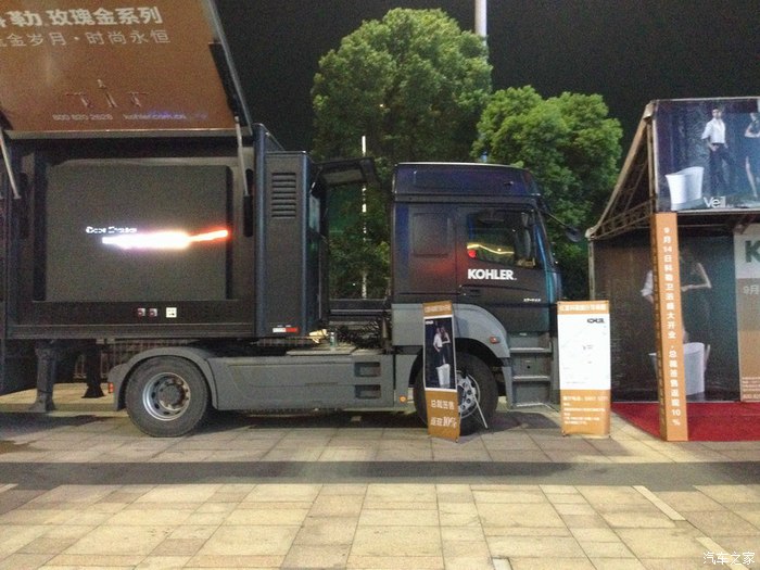 最喜欢这种进口的流动展示车了又不超长又不超高又不超宽又不超重,单桥牵引车带侧裙板一拖二的形式看着就极其养眼,我就最喜欢这类的进口流动舞台式展示车了,如果招我去开一定是十分之乐意,大爱哦。此车系第二代AXOR1840,个人估计第二代的AXOR可能是奔驰的手动9档箱G221-9。也不排除是半自动的16档Telligent 智能换档系统。发动机不用多说了大名鼎鼎的OM457LA系列发动机,此机在国内一些高端顶配豪华客车上有配备,排量12升直列6缸,功率400马力最大扭矩2000NM,爆发力比同功率的V型6缸的OM501LA要更强,但平顺性持续耐力及发动机体积等要稍于后者,此机也是奔驰上一代发动机当中的当家花旦,主要配给在AXOR和豪华大客车上。由于是夜晚拍的不多也拍的不清晰,希望大家能喜欢