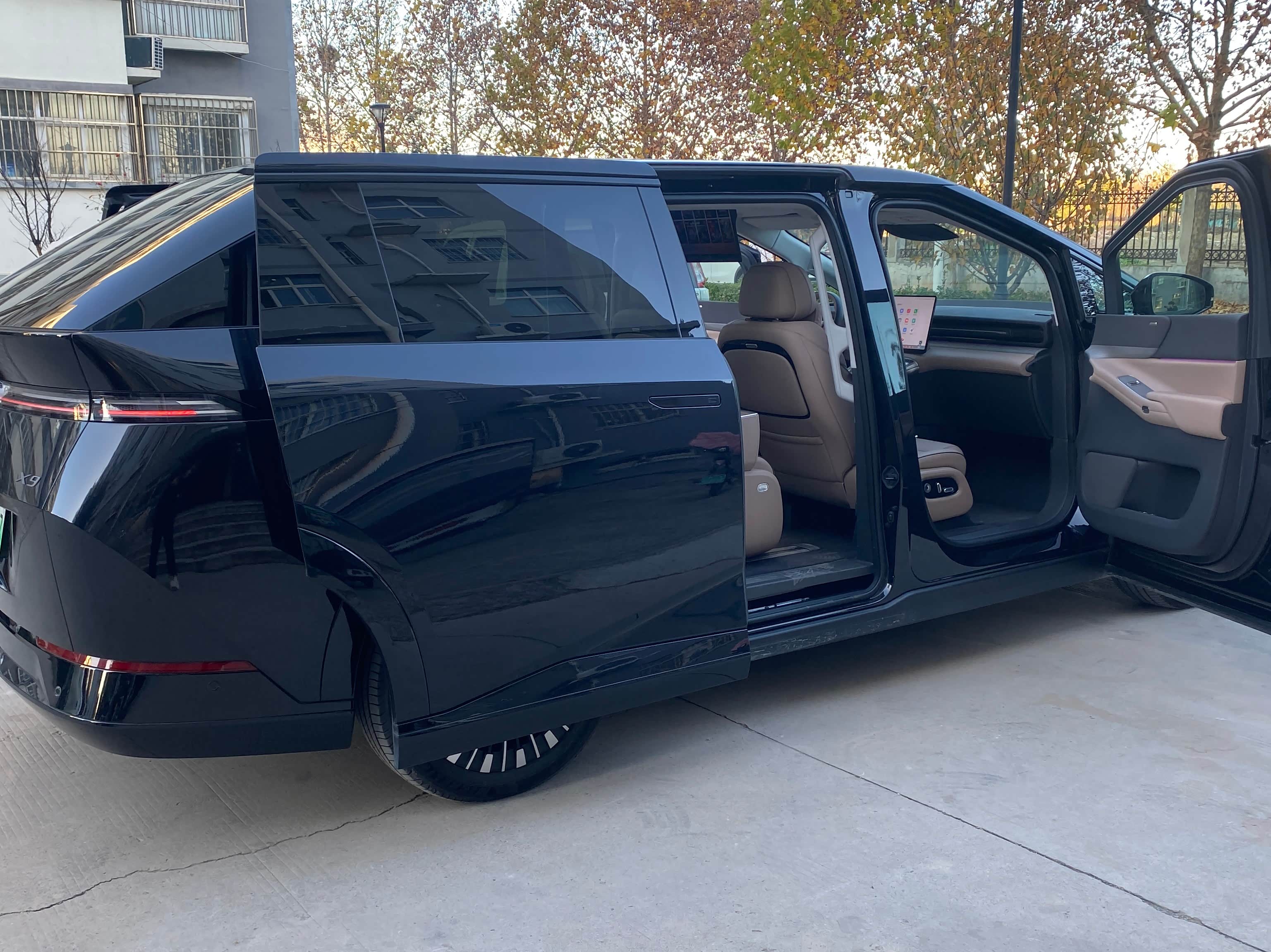 提车那天我一大早就去了交付中心。我的黑色X9已经洗干净停在专属车位了,阳光下那个漆面很亮。交付专员很耐心,陪我里里外外仔细看:绕车又检查漆面有没有划痕,轮胎生产日期,玻璃生产日期是否一致。坐进车里,把车机功能、座椅通风加热、空调、音响都试了一遍,恭喜自己无损下车!!!