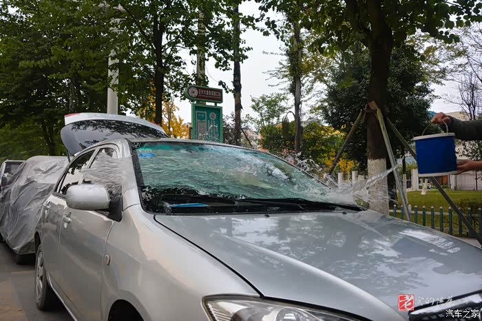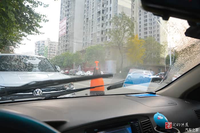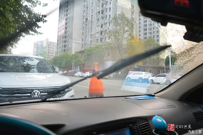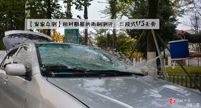 这款三段式雨刷在中小雨天气环境中表现不错,下面加大强度,模拟暴雨天气环境下 ,看看雨刷排水清洁能行方面表现如何 。