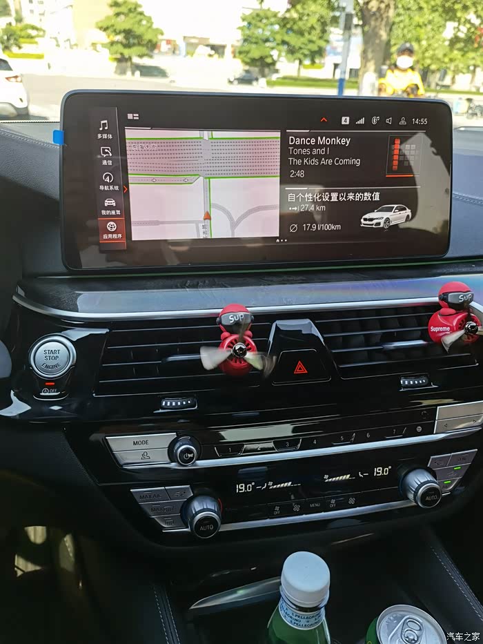 说说选车过程,其实一开始完全没有考虑过任何车,一心奔着a6去的,觉得真的太帅了。外观喜欢,内饰更喜欢。那时候压根没考虑过5系跟e,奈何家里一部上一代a6,2.5自然吸气的。亲哥在我订车前又去放了一部21款A6,家里实在不同意一家3辆a6,其中还有2辆一模一样的。只能放弃,有考虑过准新上一代e,不太能接受二手所以放弃。然后就只剩下5系了。就走了2趟4s,对比价格,没试驾,没仔细看,具体什么配置,什么都不了解就定了。落地45.5。实际办完差不多45.6。不含利息。 19888的装潢就送了无钥匙进入不错,4个卡钳罩,贴膜记录仪脚垫啥的。家里让买530,很不喜欢全景天窗,多那些动力说真的,可有可无,佛系开车,高速永远定速120。而且不太想要19寸的轮胎,工作关系,经常开烂路,朋友的530尊享说换胎换到想哭。525动力也够,省4万多还是挺香的。