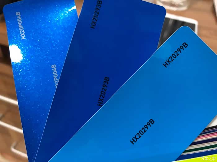 色卡上有类似这个魅惑蓝的,不过小区有个这个颜色的车(不知道是哪个车友的),自己也不想扮猪吃老虎,还是改个有区别的蓝色嘛,最后选择的小珠光蓝。车顶、耳朵、前杠中间部分和后杠选择了黑色,蓝黑搭配经典又有活力!