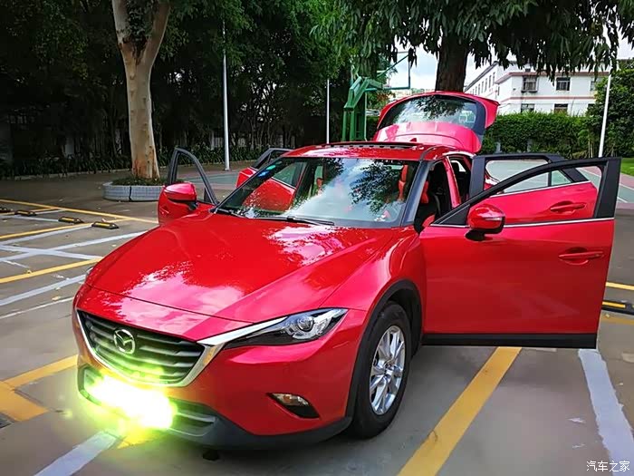 刚开始,准备用买卡罗拉的钱买SUV,那就只能看看国产的那几款了。国产车近几年整车质量突飞猛进,已经不用顾虑了,而且还有价格优势。只是现在大家都跟风搞小批量增压。或许是我的思想比较落后,总觉得增压发动机是把车的潜能给逼出来的。这样的话,同样的使用年限增压机肯定会容易出问题,而且保养保修也会耗工耗钱。后来又辗转去看了几款2.0自吸的SUV,包括了日产逍客、标致3008、马自达CX-5。逍客和3008还是因为太小巧被否了,那么基本就定了CX-5。可在去看CX-5的时候却看到了旁边的CX-4,这惊艳的外表立刻吸引了我,也让我纠结了,CX-5的车空间较大,但车型相对较老,而且马上要换代了,CX-4明显比较精神,但这空间又感觉小了些。我本人呢比较喜欢-4,所以就努力的做通了老婆的工作,自己当了一回销售,把CX-4买了。这就是我买车的历程,下面说说用车的感受吧。