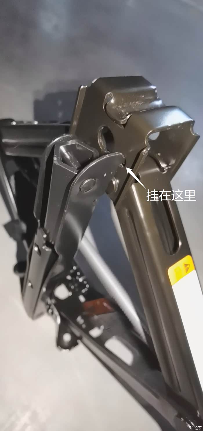 同样逆时针拧下固定千斤顶的螺栓,拔出,剩下的就是千斤顶静静地趴在后备箱的底板上(底座朝向车头)