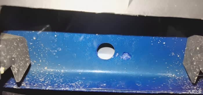 因为没有打算真正卸下轮胎,所以到这一步就打住了,开始降下并撤出千斤顶。然后看了下车底,顶掉好几块漆[哭],还好我买了补漆笔,随便补了几下。