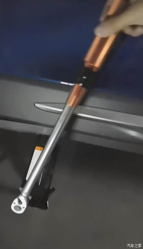 取出千斤顶后,顺便试了下,用这个扭力扳手卸掉一个车轮螺母看看长啥样: