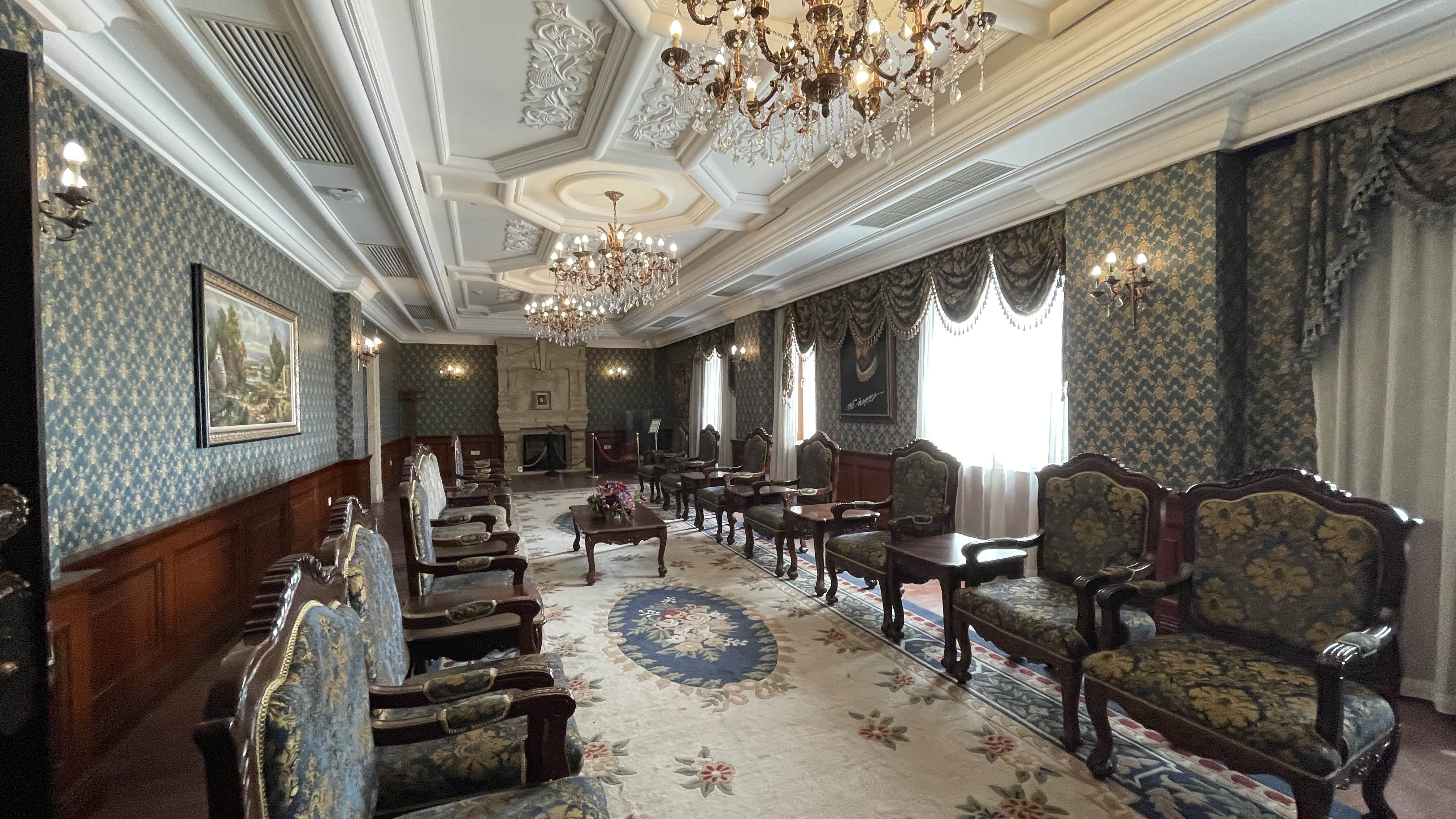 长廊尽头,豁然开朗处,便是“凡尔赛厅”。双层挑高的空间气度非凡,最吸睛的莫过于那对盘旋而上的双旋转楼梯。其设计灵感据说源自达芬奇为法国香波堡的构思,螺旋曲线在空中交织,堪称建筑艺术的一曲绝唱。