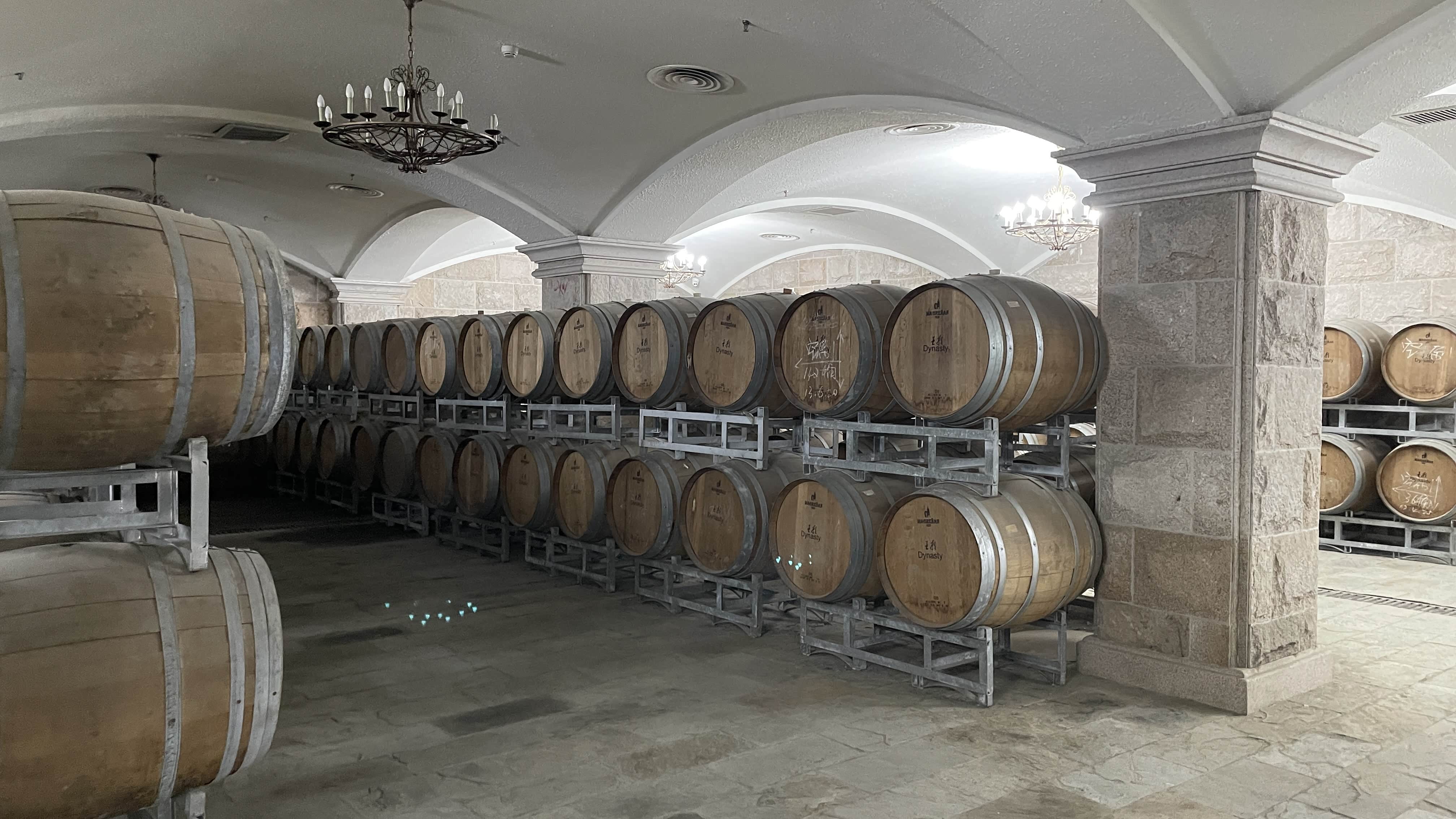 从凡尔赛厅的华美中抽身,返回酒神大厅,循阶而下探访地下一层的酒窖。瞬间仿佛穿越至欧洲古老庄园,成排敦实的橡木桶静卧于地窖中,弥漫着岁月与葡萄的醇香。一旁的葡萄酒文化展览,图文并茂,边游边学,趣味盎然。
