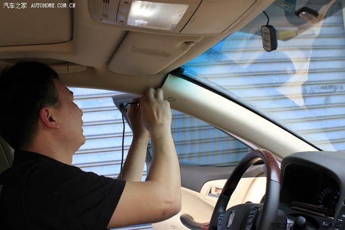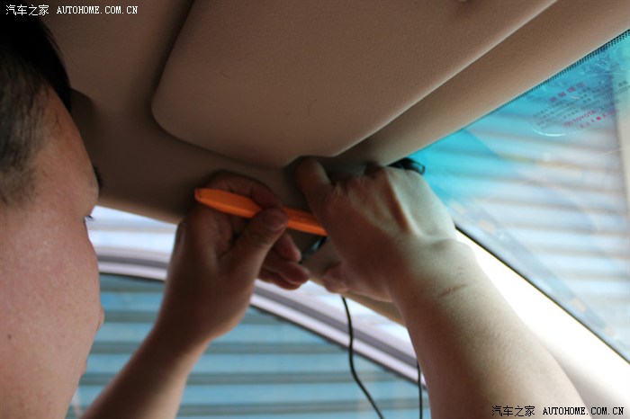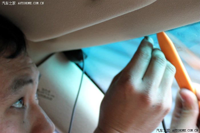 老风最讨厌在车里乱拉乱布线和有裸露线头出现,老板说后视镜记录仪和上部挡风玻璃间一小段露白用线套衔接起来