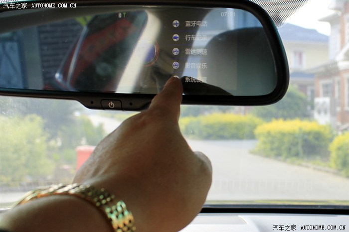 5寸的高清显示屏,在不开机的时候沃可视车载后视镜和普通的后视镜区别不大,在底部有个开机按钮,开机后画面出现在右侧,视野更加便利,屏幕分辨率为800X(RGB)X480,让画质图像更加清晰