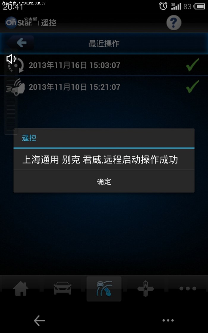 本人的车12款2.4旗舰,之前的手机操作系统不支持安吉星手机应用软件,也就一直没有试试。昨天晚上手机摔坏了,今天中午新买了个的,回来装了安吉星手机应用,抱着试试看的态度试了下远程启动,手机显示大概是指令已发出请等待1-3分钟的字样。稍等了片刻,车子发动机果然响了。进去看了下,这个启动并不是车辆完全启动,还是要需要踩刹车按一键启动,车辆自检后正常完全启动。但是有个好处就是可以作为车辆热车来用,只要上一次关闭发动机前空调是开启状态,通过手机远程启动后空调会自动开启并且是上一次使用的风量和温度设置,这对于北方的冬天来说,帮助太大了。