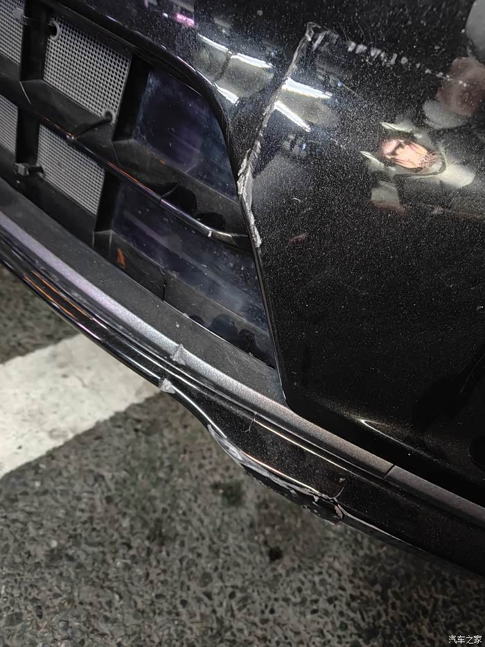你好,通过照片看的话,我们这个保险杠下方的导流板还有中网已经出现这个破损需要进行单独更换两个配件进行重新喷漆解决问题,