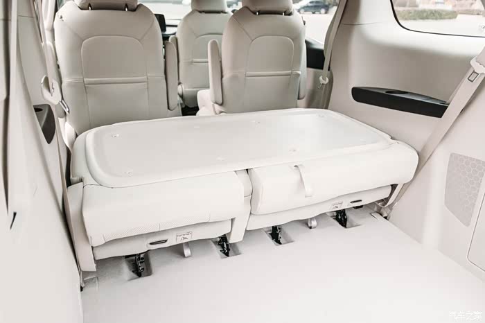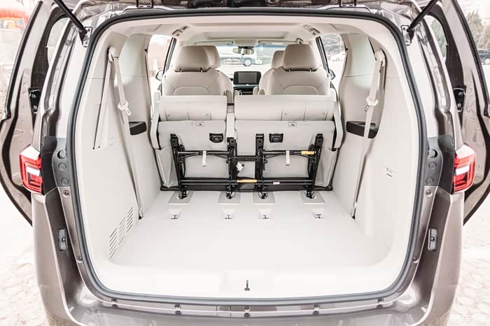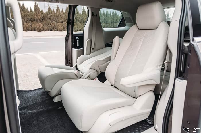 另外,第三排座椅也被非摆设,在不影响第二排乘客舒适性的同时,第三排座椅的腿部空间也非常好,同时还有杯架,出风口等配置,如果能再配置上电源接口会更好。