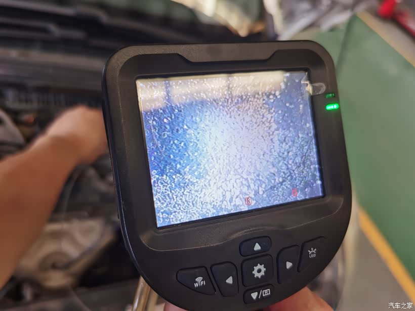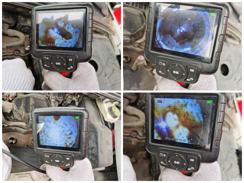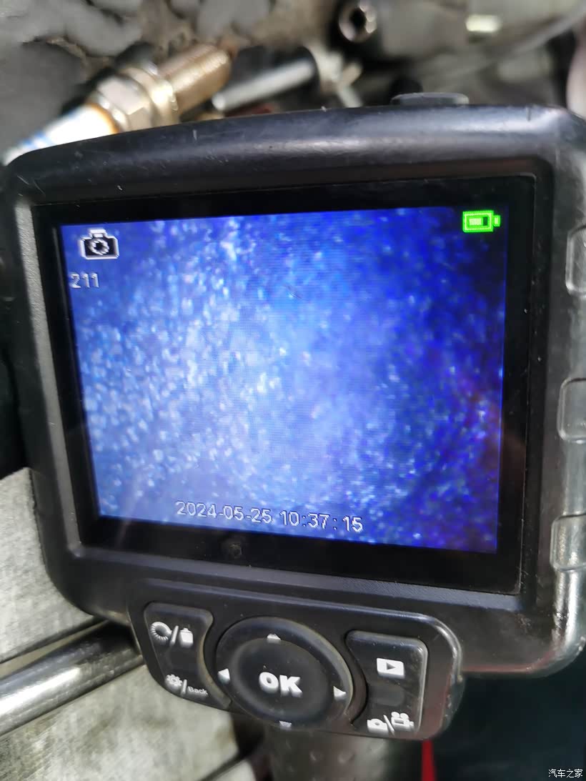 在保养的时候借用店里的内窥镜,检查了缸筒里的积碳,活塞上厚厚的一层,对于这个公里数的车来说,绝对算十分严重的积碳了。
