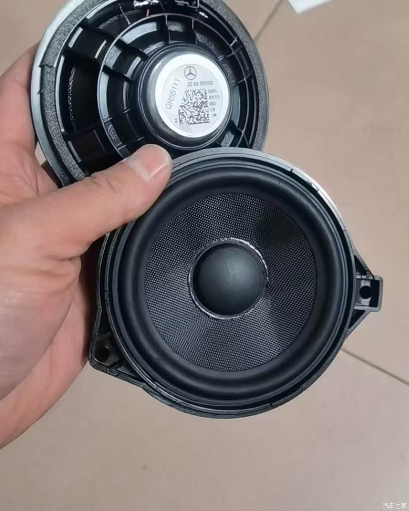 新奔驰的音响系统总体上与老款是一致的,只不过协议和车门喇叭的形状有所变化,协议这东西大家都不关系,着重说一下车门喇叭,车门中音喇叭的尺寸是没有变化的,都是4存的。只不过支架的形状从原来的三角支架变成了圆形支架,大家看照片一看便清楚了: