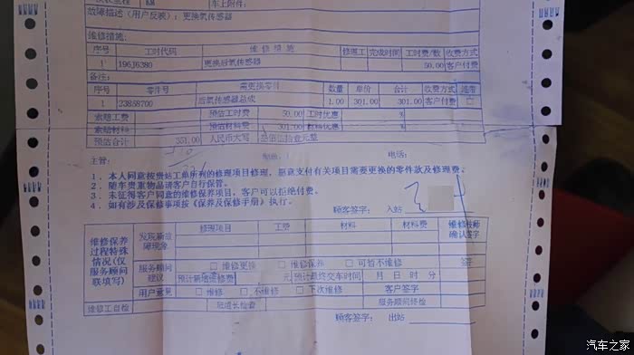 5. 新传感器不便宜,数字很吉利,321元, 工时50元, 费用合计371元。