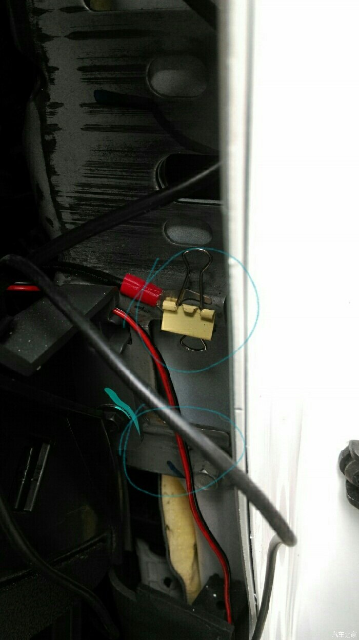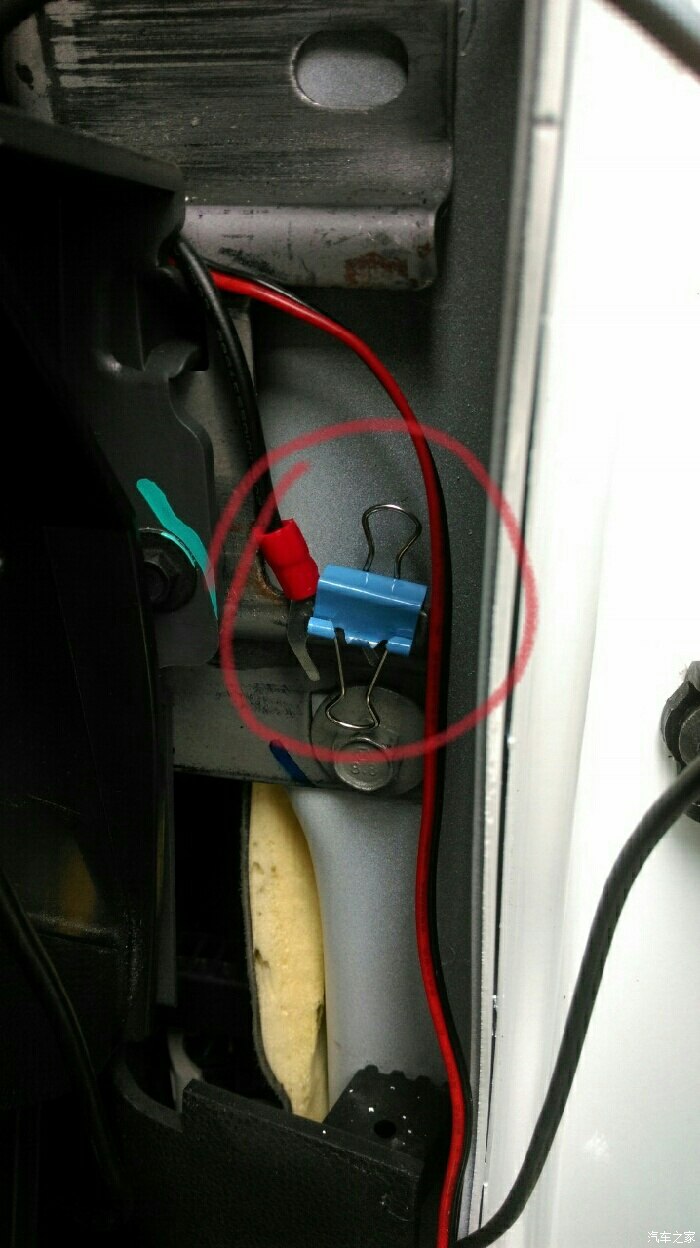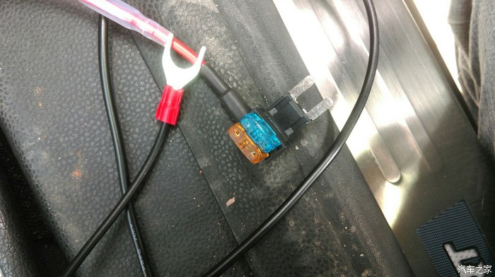 先科普一下!车主保险在正极,主要线是正极,全车身铁皮都是负极!所以我只插入一端红色的正极,把负极随便压在车框的铁驾上,试一下着车,是否能通电,是否正常!