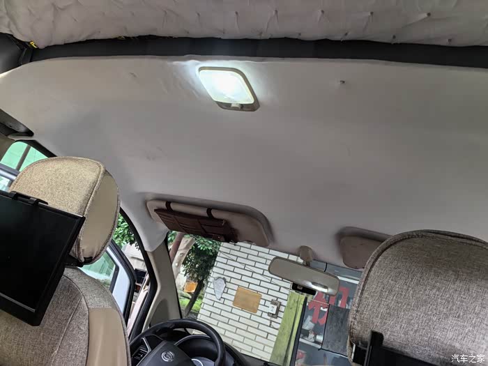 天气热起来了,车顶隔热作业马上要完成了。把原来的车顶蓬拿出来发现又破又旧。没办法锯掉后面的不要。喷胶自己包,唉自已水平太臭,包的不好,凑合用。后面用桑拿板铺。下次再搞了