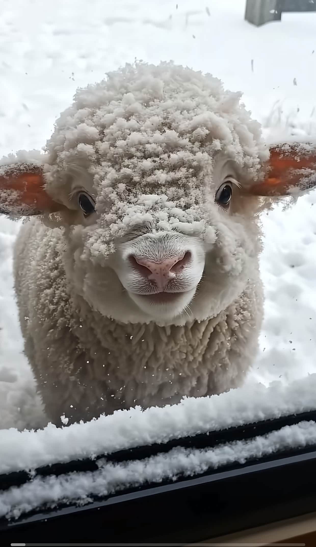 小咩咩被冻坏了吧!好萌好可爱啊!