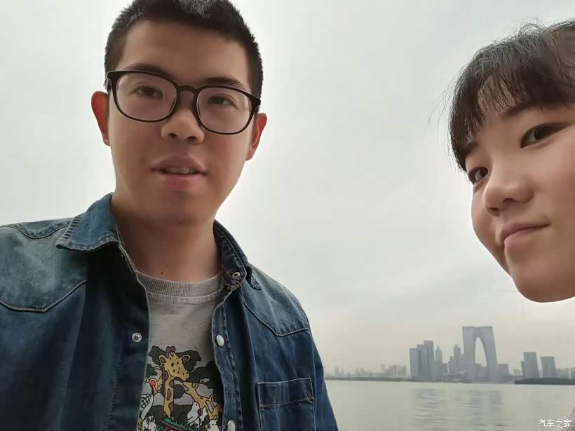 17年秋,跟老婆开车去苏州玩留念,后面是金鸡湖!东方之门大厦隐约可见!