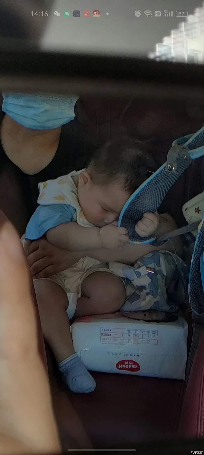 打疫苗回家!车坐着坐着,自己拿着书包带就睡着了,从内视镜一看,哎呀,太可爱了!