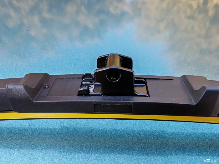 下两图是雨刷器中部与塑料卡扣连接处结构,金属配件上的圆形设计也是为了方便将雨刷器卡扣牢固的卡入。