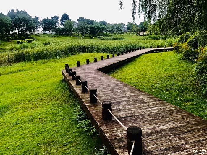 今天6点从成都海骏达出发,大约7点步行到达成都磨底河湿地公园。开始游览。磨底河湿地公园位于郫都区东南部新城,是以湿地保护、科学普及、游览休憩、户外健身为一体的城市新区滨河景观,除公园主体部分较为集中外,沿磨底河修建的天府绿道呈带状分布,是郫都区城市的生态绿核。走上天府绿道,跨过青白石桥,眼前的景色豁然开朗,虽然郫都没有宽阔的大海,却有这磨底河的静谧与清秀。