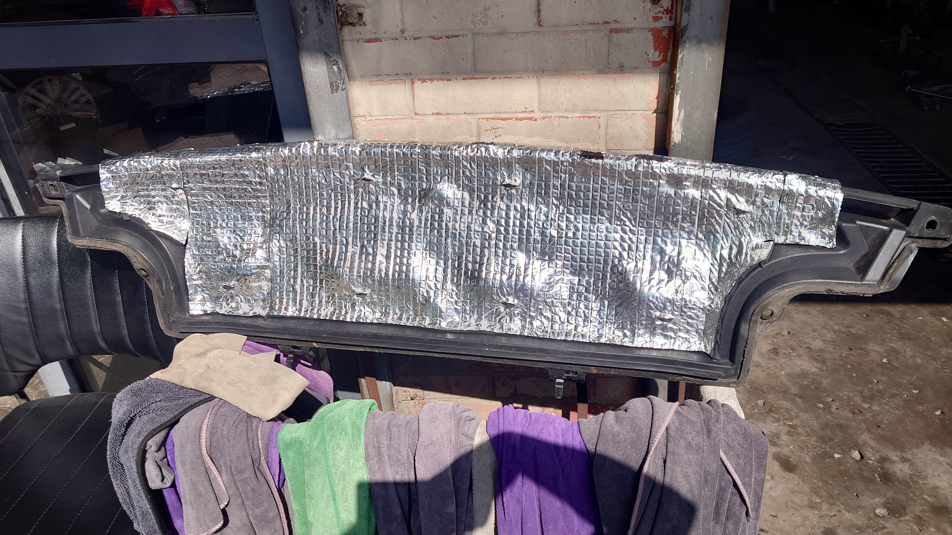 集雨板的隔热棉也坏了一面,用铝合金的薄板不好剪,就直接买了了个带橡塑铝箔隔热棉。不好看但是管用