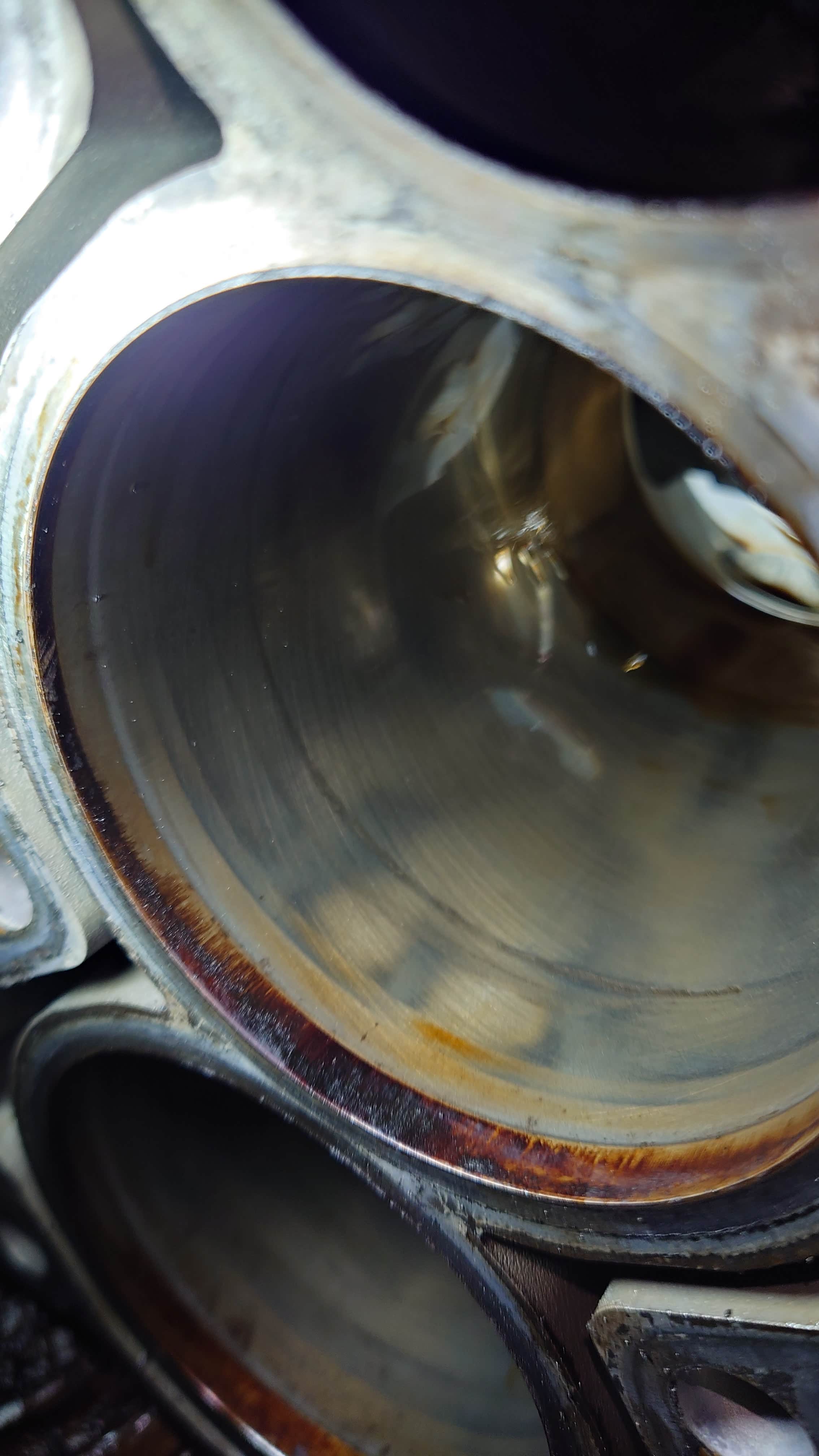 缸壁状态还好,没有拉伤,不过研磨纹不如EW发动机深。