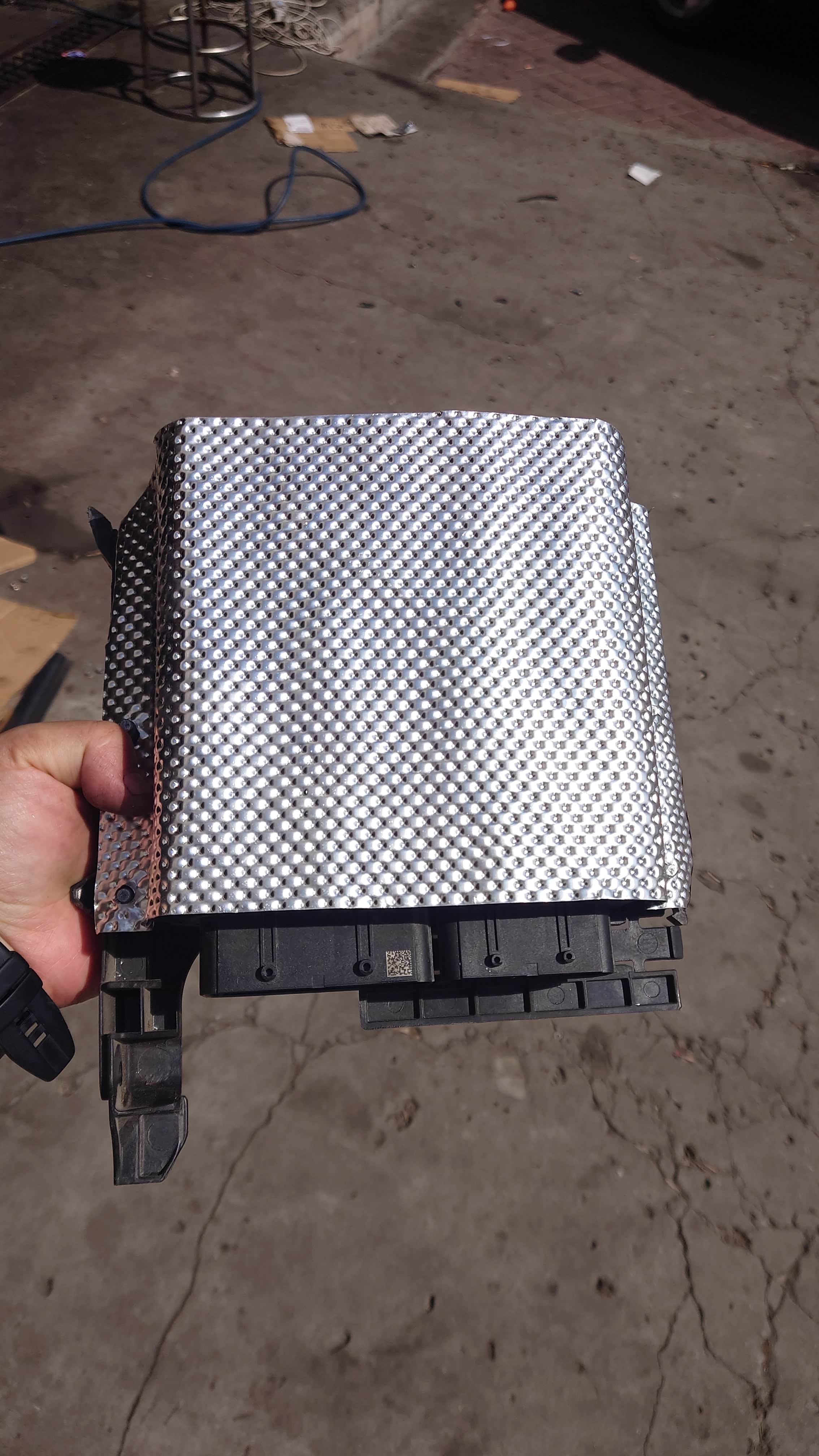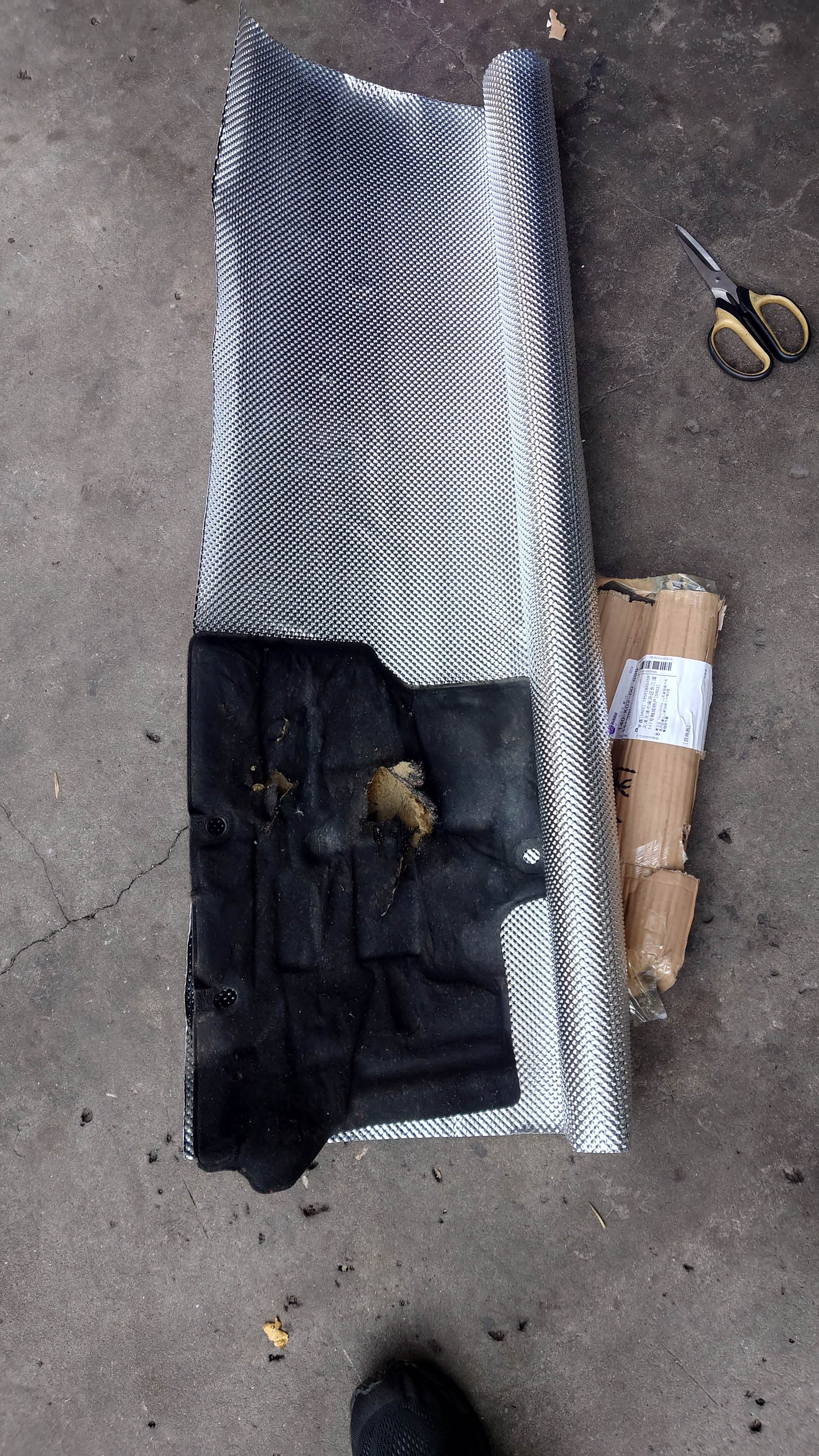维修期间,又干几个手工活。以前的隔热棉都老化坏了,马云家也没有新的卖。直接买了一款铝合金的散热壳子。0.5厚的,硬度非常高,跟原厂排气隔热板一样,不好剪。